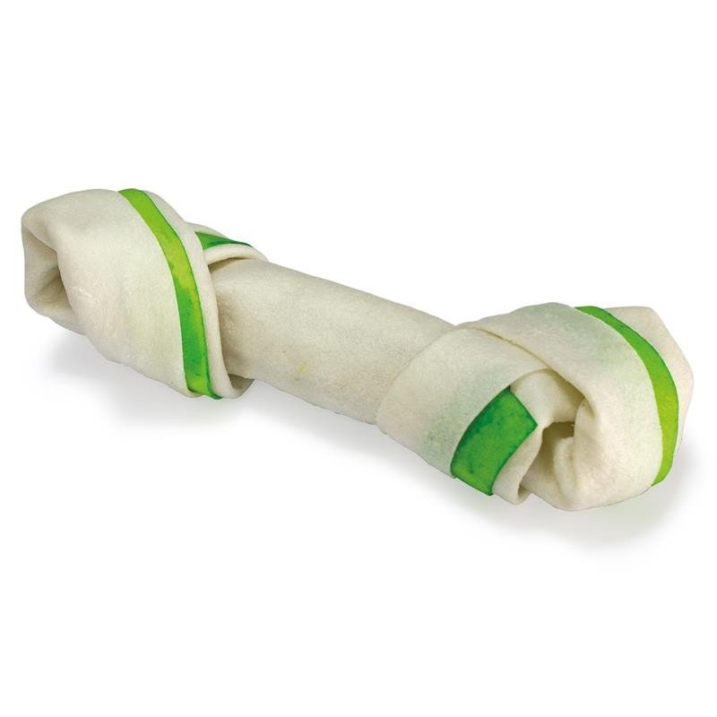 Двуцветен вързан кокал от натурална кожа с вкус на мента .