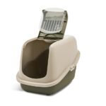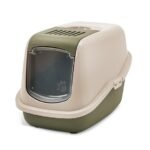 Котешката тоалетна къща Nestor от серията Happy Planet в цветове мока/зелено е много лесна за почистване благодарение на специално разработената предна врата, която се отваря широко и позволява внимателно и бързо премахване на замърсяванията, без да се отстранява горната част. Долната част на Nestor е с повдигнат гръб, което предпазва от протичане. Освен това котешката тоалетна къща има пластмасова люлееща се врата и сменяем филтър, за да се отървете от всякакви неприятни миризми. Тя може лесно да се премества благодарение на вградената дръжка.