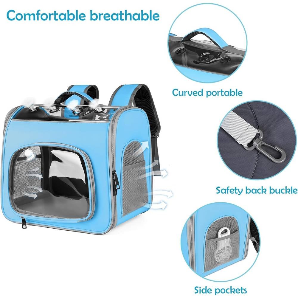 Тази раница за домашни любимци е снабдена с мрежести панели от двете страни, за да се насърчи отличната циркулация на въздуха и да се гарантира комфортът на вашия домашен любимец по време на пътуването.
