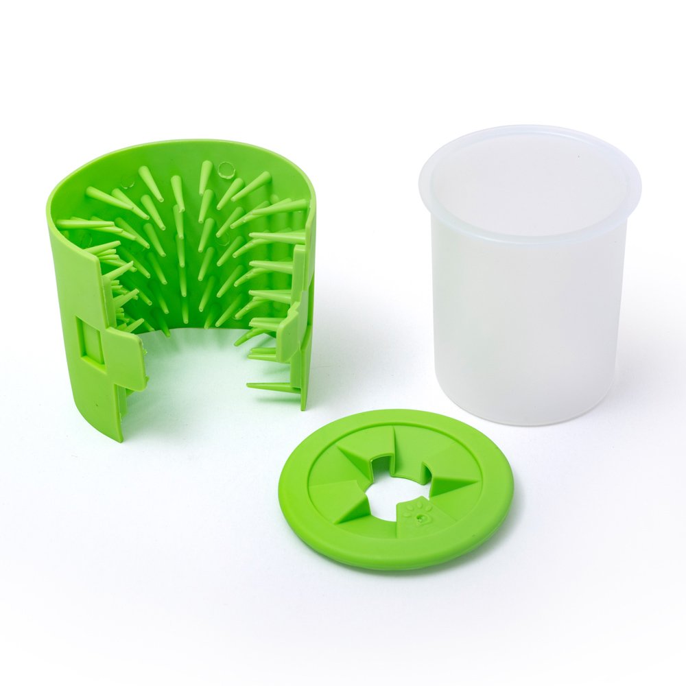 В контейнерчето на уреда има гумени иглички, които с помощта на малко водата в него почистват с лекота лапите на Вашето куче и запазват дома Ви чист.