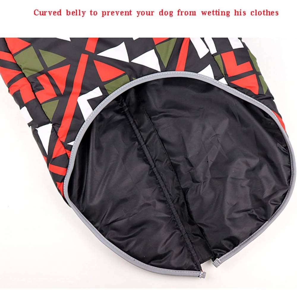 Външният слой на дрехата за кучета е изработен от полиестерна водоустойчива и ветроустойчива тъкан с покритие, което може да предотврати проникването на влага, като например леден дъжд или разходка по време на буря. Вътрешността на палтото е изпълнена с висококачествен PP- памук – топъл и лек. Удобно за носене от вашето куче.