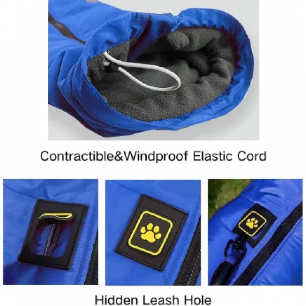 Закопчаването става с цип от страната на гърба, за максимално удобство на стопанина, има и скрит отвор под емблемата на лапичка, през която можете да прекарате катарамата за закопчаване на кучето Ви.