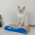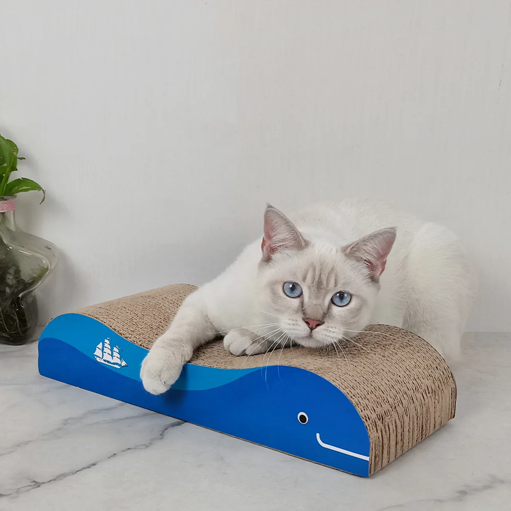 Котешка драскалка с вълнообразен дизайн, която улеснява котките да лежат и да се изтягат, докато точат ноктите си.