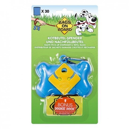 Диспенсер за торбички Bags on Board е във формата на кокал. Можете да го намерите в три цвята – розов, син и черен, като всеки съдържа 30 торбички.