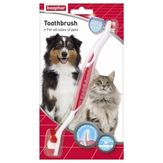 Нов дизaйн на ергономичната четка за зъби от Beaphar с мека, гумена дръжка за по-лесна употреба.