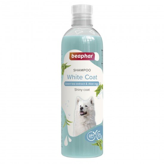 Beaphar Shampoo White Coat – шампоан с алое вера за бяла козина e специално създаден, почистващ шампоан за кучета с бяла и светла козина. Съдържащите се в него зелен чай и алое вера овлажняват по естествен начин кожата на вашия четириног приятел. Шампоанът е pH-неутрален, което го прави подходящ дори и за най-чувствителни кожи.