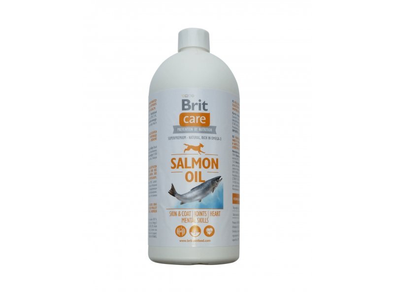 Олиото от сьомга е хранителна добавка за кучета, която оказва благотворно влияние на козината, кожата, мускулатурата, нервната и сърдечно съдовата система. То е перфектен източник на Омега 3 мастни киселини (EPA и DHA), които имат положителен ефект върху много метаболитни процеси в организма. EPA киселината има естествени противовъзпалителни ефекти, а DHA киселината участва в изграждането на мозъчните структури и ретината. Маслото от сьомга балансира съотношението между Омега 3 и Омега 6 мастни киселини и значително намалява количеството на холестерола в кръвта. При редовно използване на масло от сьомга, козината на Вашето куче ще бъде плътна и блестяща. Помага за решаването на здравословни проблеми като: падане на козината, тънък косъм, изтощена козина без блясък, пърхот, плешиви петна, изсушаване и възпаление на кожата, сърбеж по кожата, алергични реакции, екземи, проблеми с пигментацията, слаба имунна система.