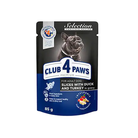Club 4 Paws Premium Adult Dog Slices пауч за кучета с патица и пуйка в желе, 85 гр