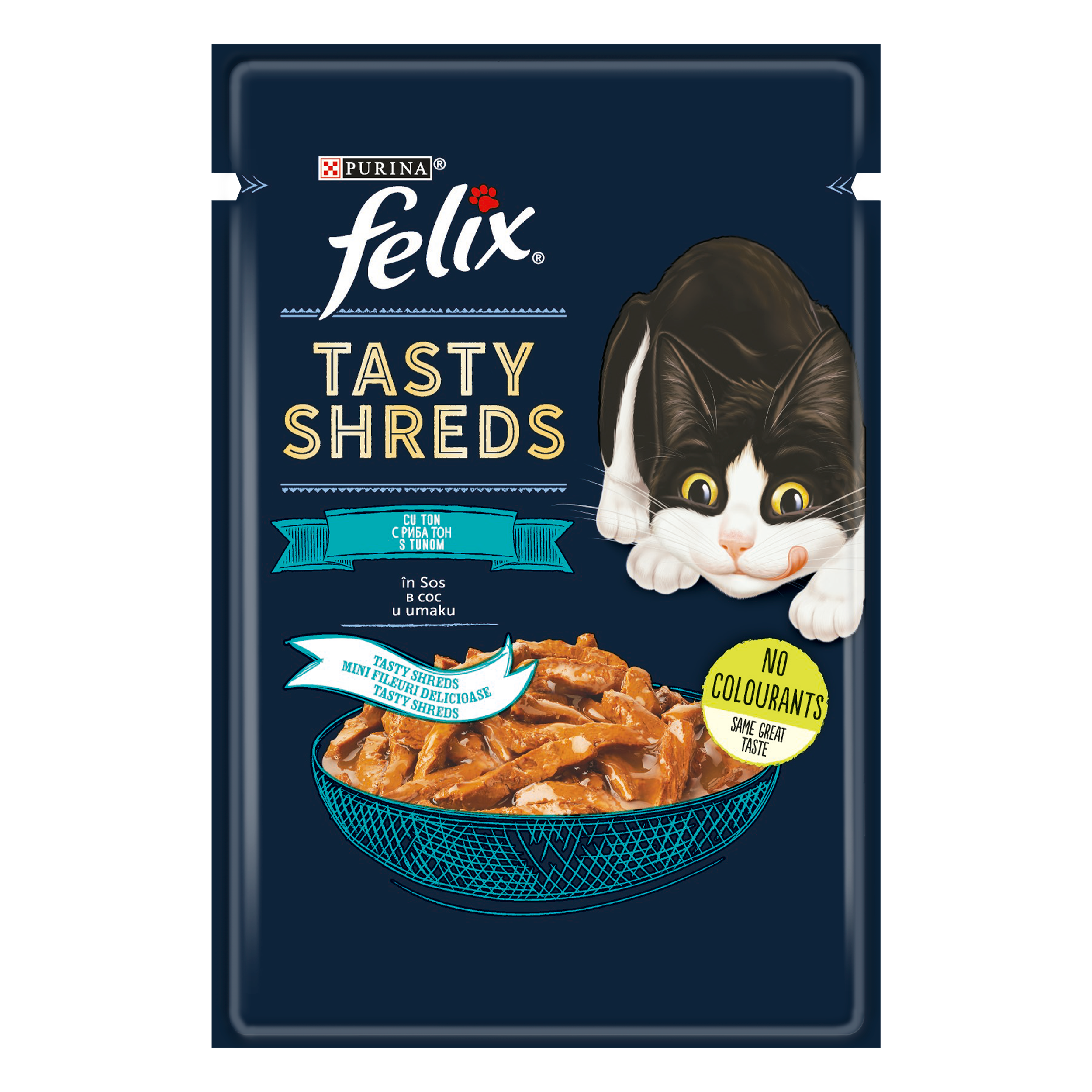 FELIX Tasty Shreds са направени от висококачествени съставки, които задоволяват 100% от ежедневните нужди на вашата котка, когато се сервират според указанията за хранене.