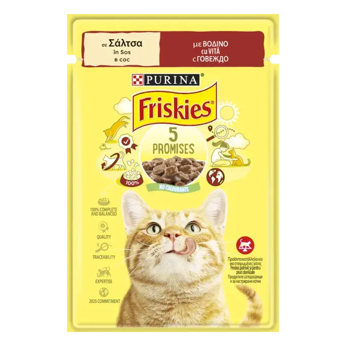 Purina Friskies пауч за котки с говеждо месо в сос, 85 гр.