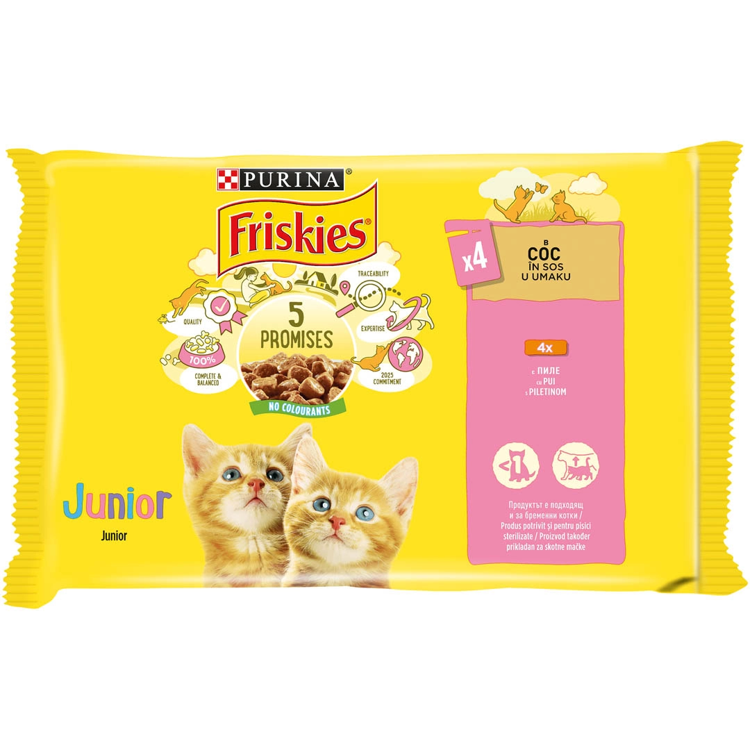 Purina Friskies Junior паучове за подрастващи котки с пилешко месо, 4х85 гр