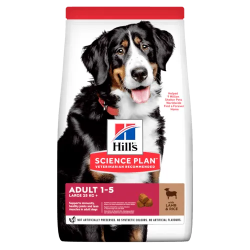 Храната Hill’s Science Plan Large Breed Adult с агнешко и ориз е специално формулирана да посреща енергийните нужди на кучетата от едри породи в разцвета на годините им.