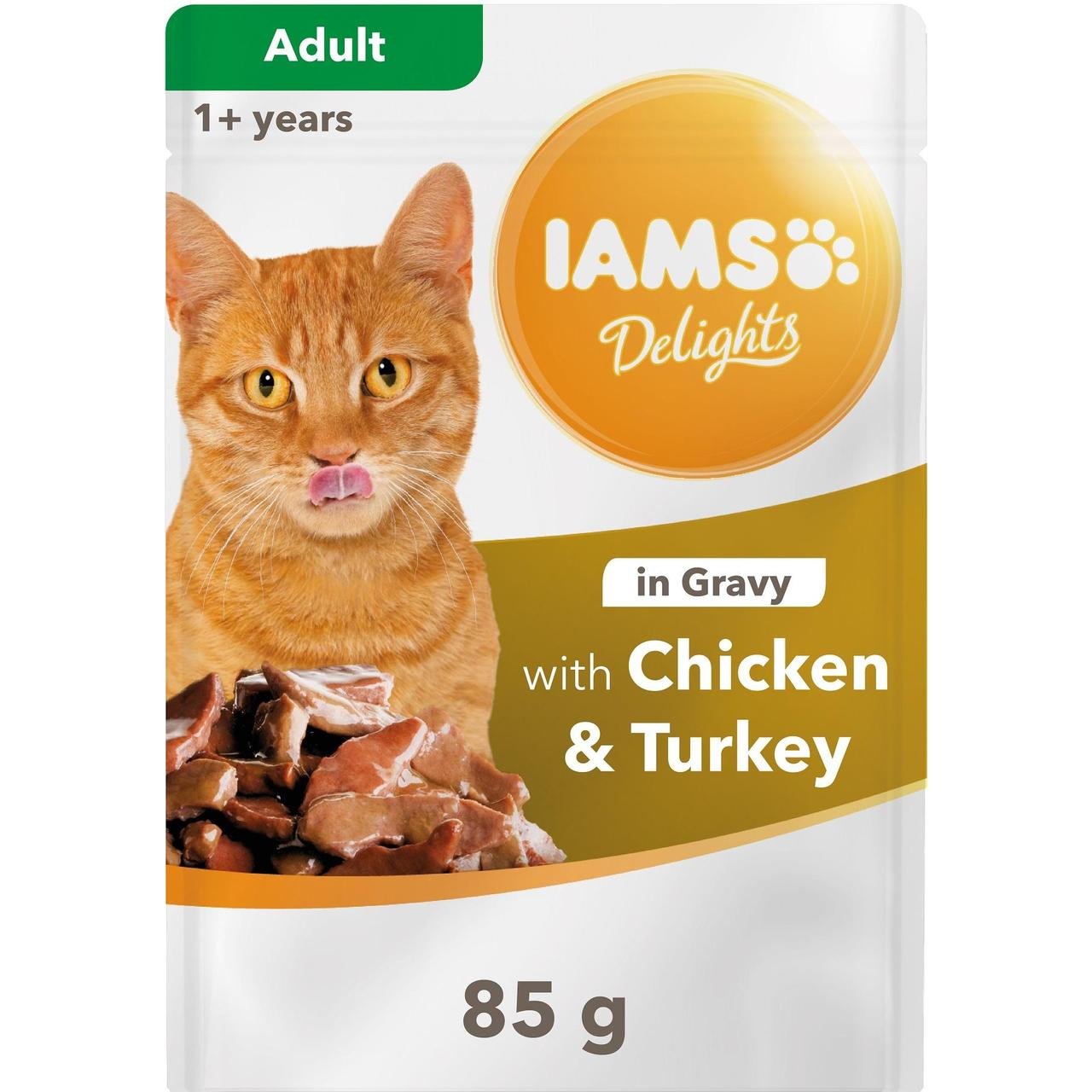IAMS Delights Adult се отличава с високо съдържание на протеини с животински произходи много се харесва на домашните тигри. С нея вие получавате пълноценна самостоятелна храна с лесносмилаема комбинация от месо, риба и зеленчуци, която съдържа много ценни витамини и минерали. Производството се извършва под строг качествен контрол.