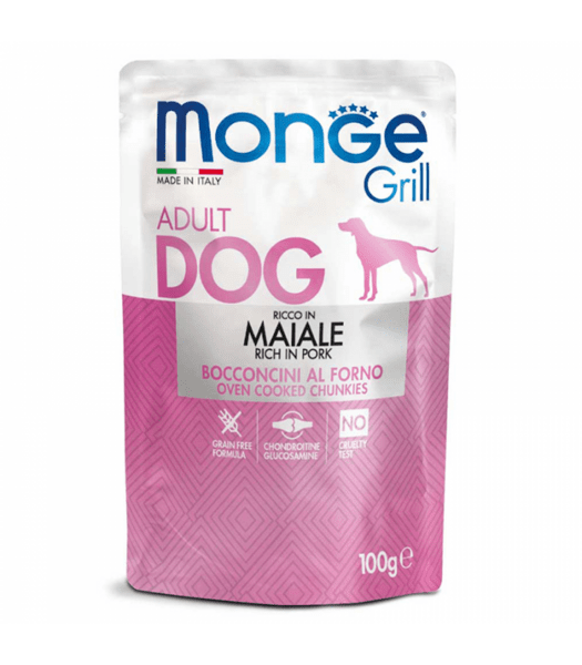 Пауч с хапки приготвени на скара, които позволяват на Вашето куче да бъде по-близо до идеалната си диета. Рецептите на Monge Grill съдържат първокласни източници на животински протеин, подбрани заради хранителните им характеристики. Оптимален продукт, съобразен с хранителните изисквания на различната възраст и физиологични състояния.