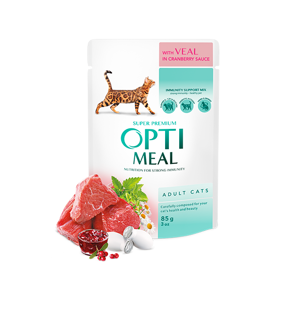 Opti Meal пауч за възрастни котки с телешко в сос от червени боровинки 85гр