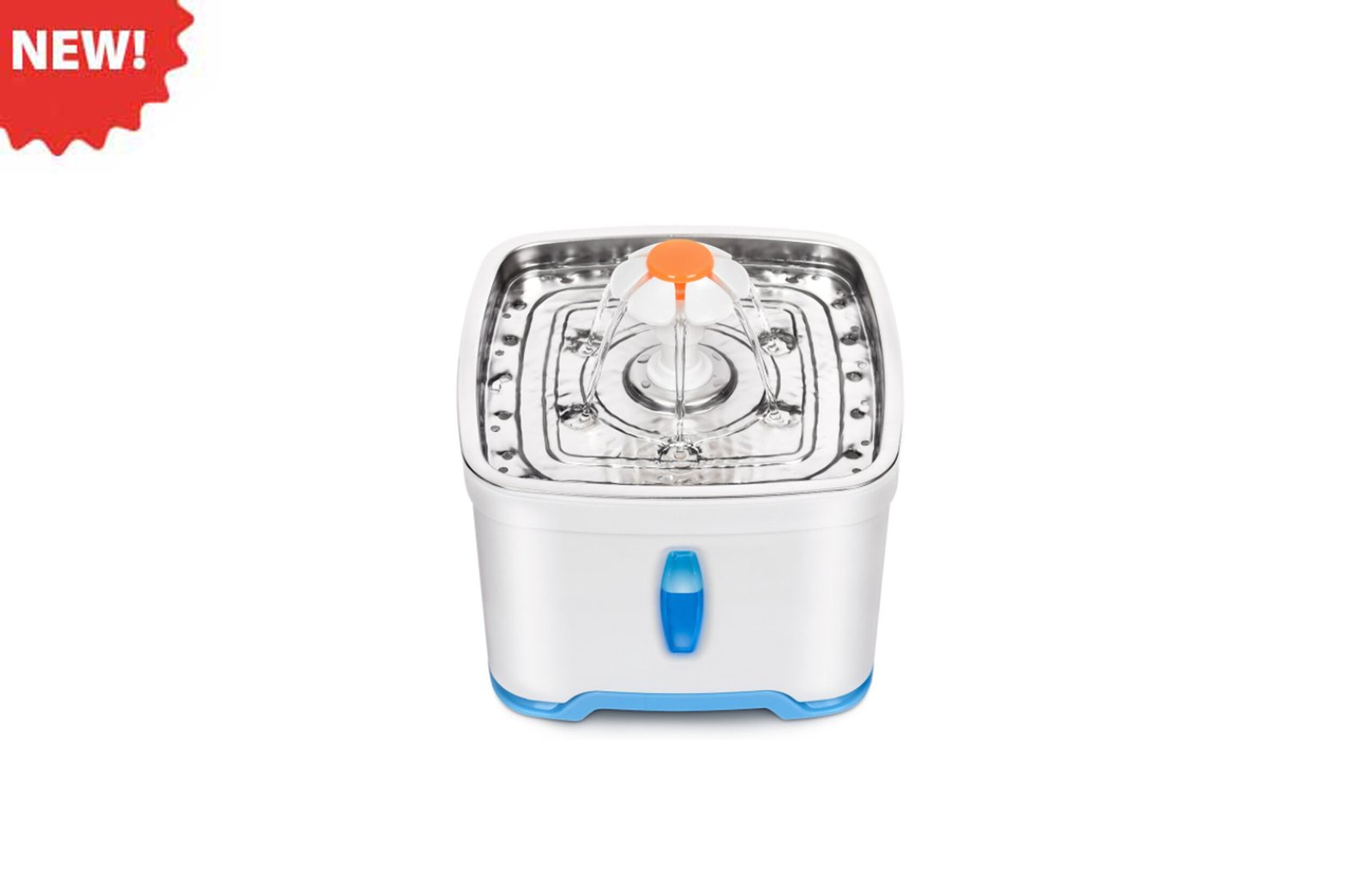 Електрически квадратен фонтан с повърхност от неръждаема стомана и LED осветление за чиста, прясна вода. Шумът на водата насърчава домашния любимец да пие повече вода, а LED осветлението го отпуска. Има 3 настройки на скоростта на водния поток . Повърхността от неръждаема стомана не предизвиква алергии у домашния любимец, препоръчва се за кучета и котки, чувствителни към пластмасов материал. Подходяща за малки домашни любимци.