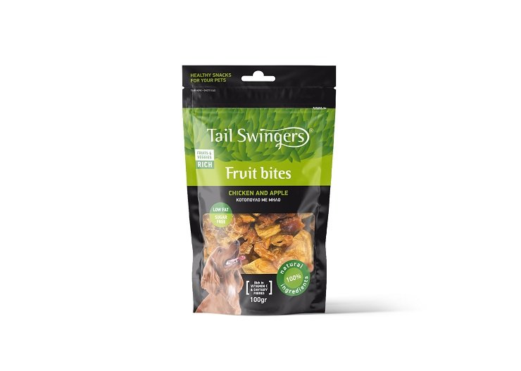 Съдържа 50% ябълка, 49,8% пилешко филе, 0,2% сол.