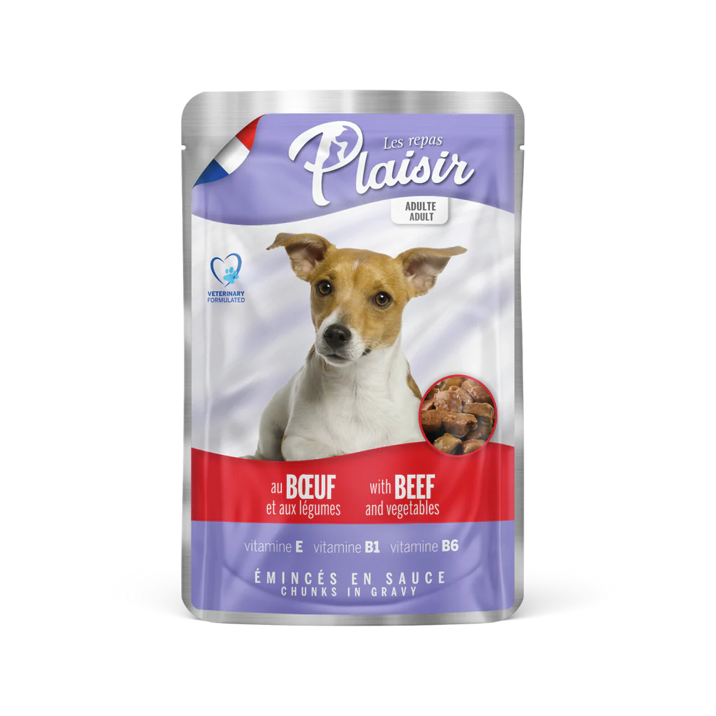 Plaisir Beef пауч за куче с телешко и зеленчуци, 100 гр.