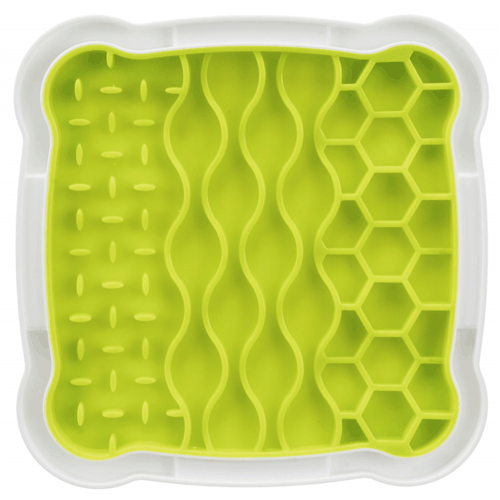 Облизването може да има успокояващ ефект върху кучетата, а Trixie Lick n Snack Platter е идеалният спътник. Подложката има множество вдлъбнатини и три различни шарки на едната повърхност, така че ще забавлява вашето куче. Особено подходяща е за животни, които се хранят бързо – така процеса на хранене се забавя, което допринася за по-добро храносмилане.