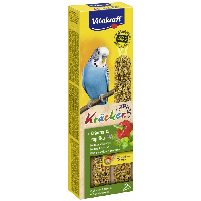 Крекерите на Vitakraft® (Kräcker® e запазена марка на Vitakraft® ) са едновременно истински вкусни и много занимателни, подтиквайки папагалите сами да заработват храната си чрез присъщи за тях дейности. Три вкусни, изпечени върху естествено дърво слоя предлагат изключително дълго удоволствие, докато птицата кълве и добива храната си, и подпомагащи грижата за човката.